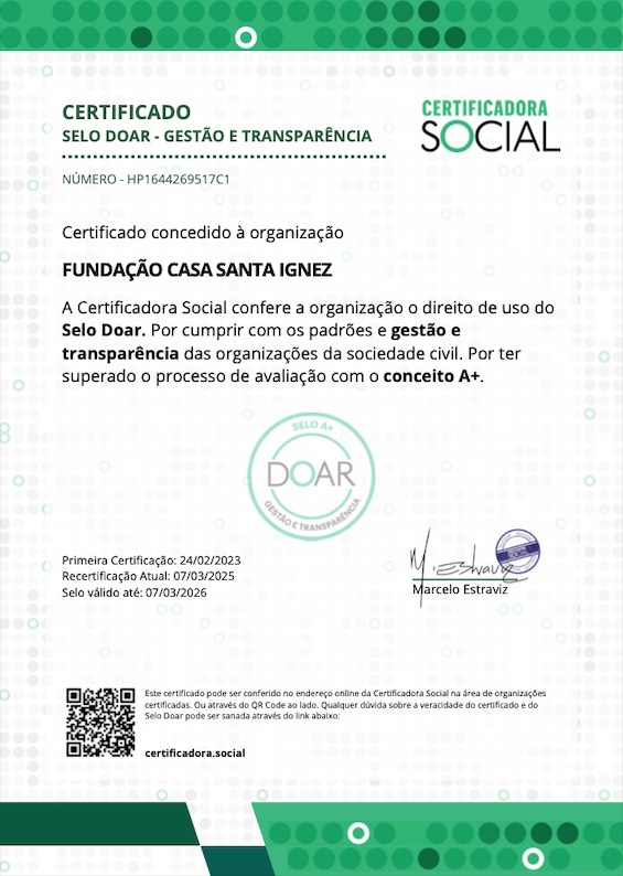 Desde 1919, a Casa Santa Ignez desempenha um papel fundamental na vida da população das Comunidades da Rocinha e Parque da Cidade, no Rio de Janeiro, desenvolvendo talentos e ajudando a transformar as vidas e o curso da história de inúmeras crianças. Um casarão centenário em meio a uma das áreas mais verdes da capital carioca, no bairro da Gávea, recebe diariamente cerca de 250 meninos e meninas, em uma bem estruturada creche e no contraturno, oferecendo apoio educacional e providenciando as mais básicas necessidades.